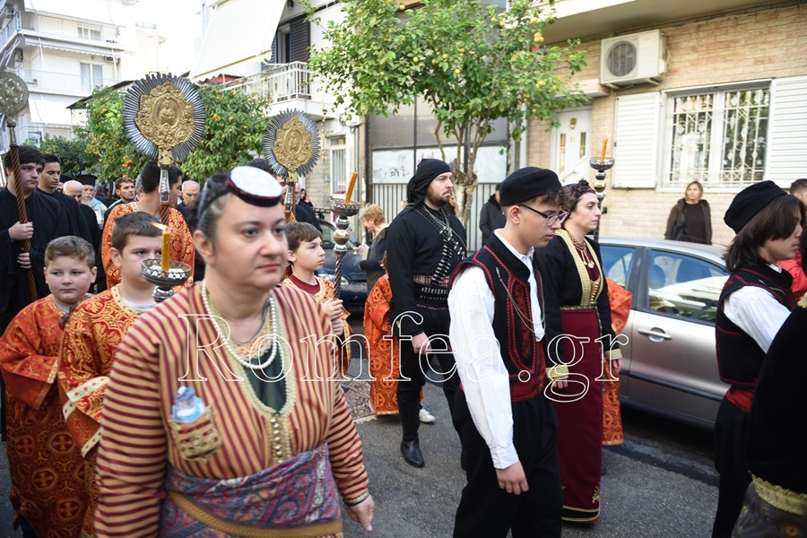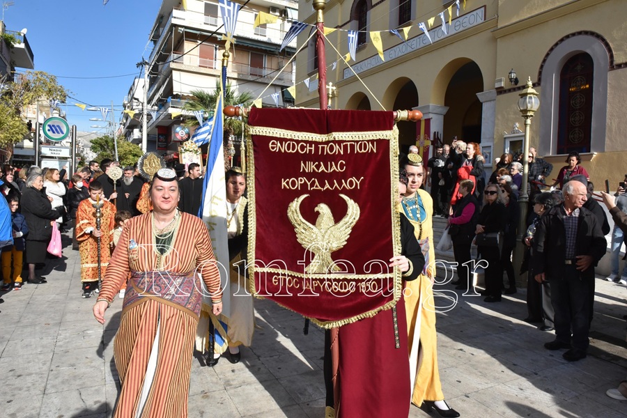 Μετά το πέρας της Θείας Λειτουργίας πραγματοποιήθηκε η Λιτανεία της Ιεράς Εικόνας και τεμαχίου Ιερού Λειψάνου του Αγίου Νικολάου, συνοδεία μαθητών σχολείων, παιδιών των κατηχητικών συνάξεων του Ναού και προέδρων και μελών πολιτιστικών συλλόγων, υπό τους ήχους της Φιλαρμονικής Μπάντας.