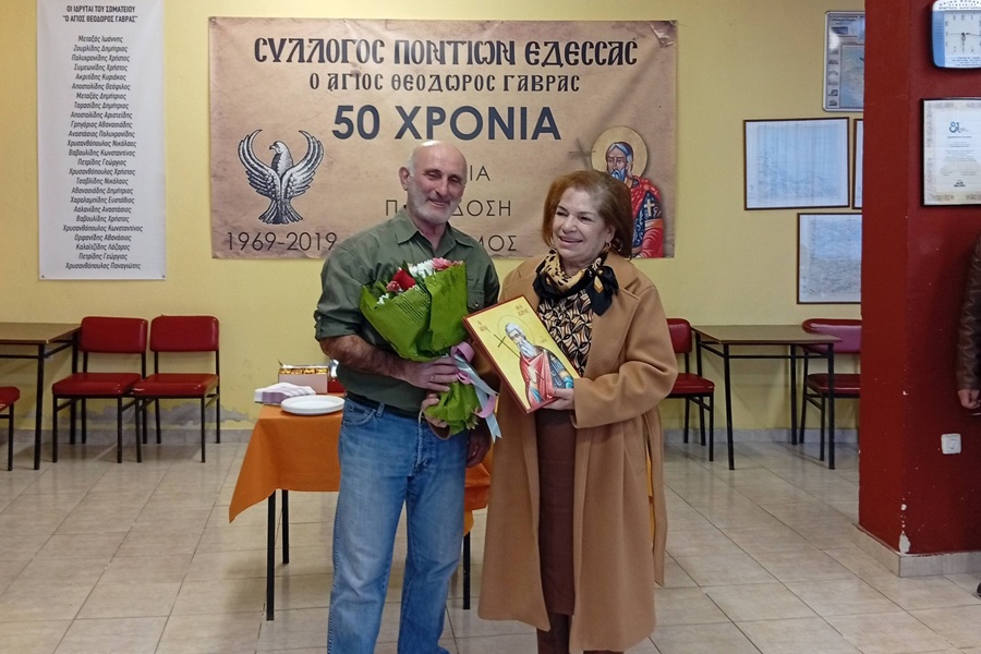 Η τελευταία αποχαιρετιστήρια συνάντηση έκλεισε με κέφι και κεράσματα ενώ ο Πρόεδρος του Συλλόγου, κ. Γαβριηλίδης Ιωάννης, της πρόσφερε μια Εικόνα του προστάτη μας, Άγ. Θεόδωρου Γαβρά, με την υπόσχεση από όλους να συνεχίσουμε τους κύκλους μαθημάτων, σύντομα, με αμείωτο ενδιαφέρον και πάθος για την κοπτική-ραπτική.