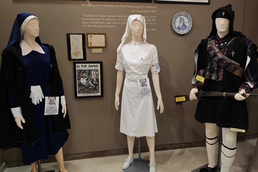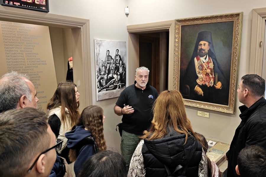 Στον πρώτο όροφο του μουσείου, ήρθαν σε επαφή με τον αγώνα για την απελευθέρωση της Μακεδονίας, θαυμάζοντας από κοντά σπάνια προσωπικά αντικείμενα αγωνιστών, ξίφη και μετάλλια, στολές.