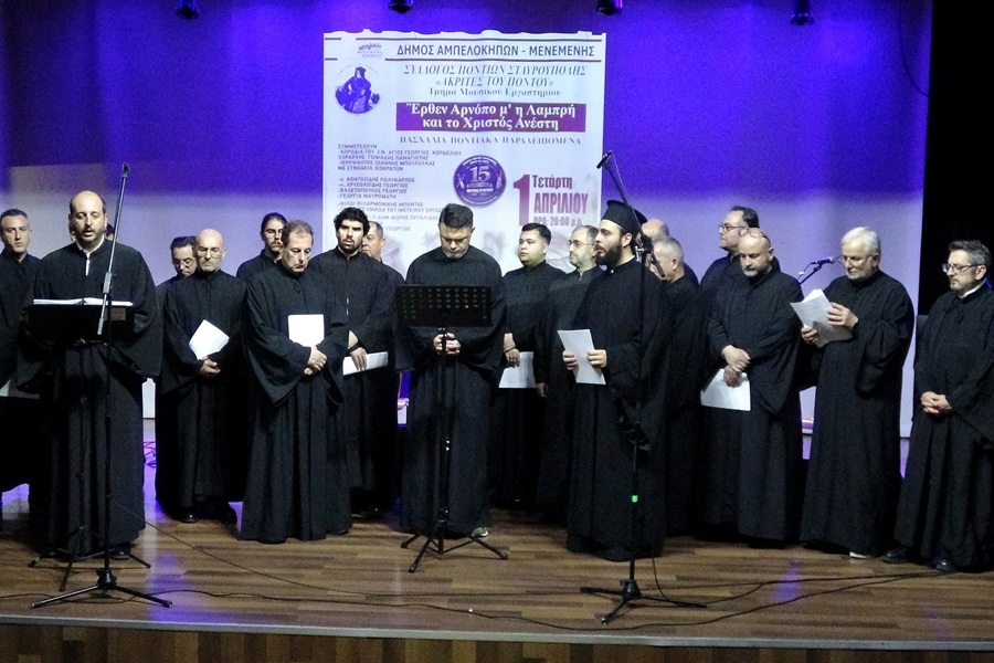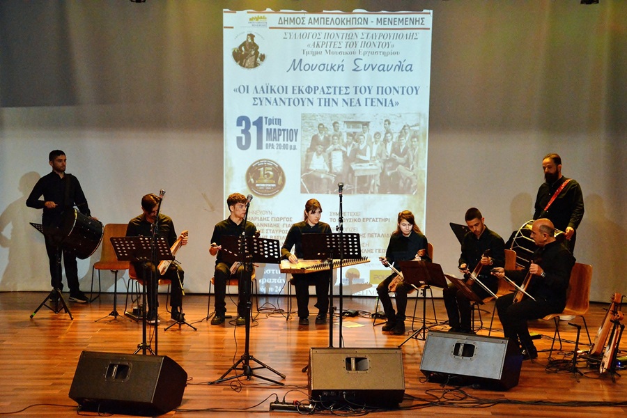 Δύο εμβληματικές μουσικές εκδηλώσεις πραγματοποίησε το τμήμα μουσικού εργαστηρίου του Συλλόγου Ποντίων Σταυρούπολης «Ακρίτες του Πόντου» σε συνεργασία με τον Δήμο Αμπελοκήπων-Μενεμένης και η Αντιδημαρχία Πολιτισμού του Δήμου την Τρίτη 31 Μαρτίου 2026 με τίτλο : «Οι λαϊκοί εκφραστές της ποντιακής παράδοσης συναντούν τους νέους εκφραστές» και την Τετάρτη 01 Απριλίου 2026 εκδήλωση με τίτλο: «Πασχἀλια Ποντιακά Παραλειπόμενα», στις 20:00, στο Πολιτιστικό Κέντρο «ΚΑΡΑΠΑΝΤΖΕΙΟ» (ΘΕΑΤΡΟ ΣΟΦΙΑΣ ΒΕΜΠΟ). Οι εκδηλώσεις πραγματοποιήθηκαν στο πλαίσιο των επετειακών εκδηλώσεων για τα 15 χρόνια του Μουσικού Εργαστηρίου.